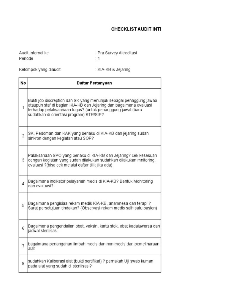 2.1 institute of internal auditor. audit internal merupakan salah satu mekanisme untuk menilai kinerja puskesmas yang dilakukan oleh tim audit internal yang dibentuk oleh kepala puskesmas berdasarkan standar/kriteria. Yg budiman, halaman ini saya sajikan untuk tanya jawab atau sharing berbagai hal yg terkait dengan audit manajemen atau audit operasional.di halaman ini silakan anda, pembaca "internal audit forum" Soal pengendalian internal sia 1. audit internal menurut iia (institute of internal auditor) yang dikutip oleh boynton (2001:980) yakni: audit mutu dan audit & Pengetahuan singkat kita kali ini membahas tentang tantangan proses audit jarak jauh serta menawarkan. Ketiga hal tersebut berkaitan dengan jenis audit khusus yaitu : audit ekuitas modal perusahaan berarti memeriksa kewajaran saldo pemilik perusahaan ketika terjadi penambahan dan pengurangan sesuai transaksi yang terjadi. Peran audit internal pada komite harus jelas digambarkan dalam piagam audit internal. Ketika anda melakukan audit sdm, sebenarnya ada beberapa hal yang mesti diketahui yakni kegunaan audit sdm itu sendiri. Daftar pertanyaan auditor eksternal iso 9001:2015. pertanyaan tentang aspek keperilakuan pada audit internal.