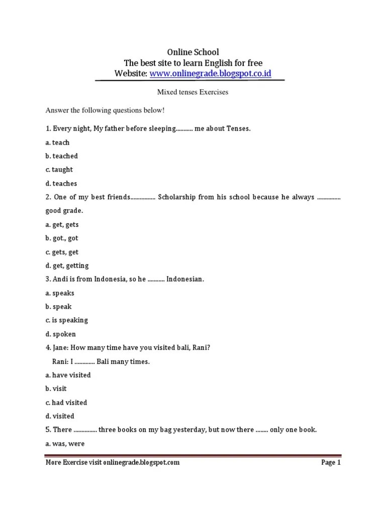 Agar memudahkan dan membantu para pembaca untuk mengetahui kebenaran jawaban dari soal yang diberikan. Ada 10 contoh soal yang membahas tentang tenses ini dalam bentuk pilihan ganda. Contoh soal pilihan ganda present perfect tense dan . Berikut adalah 23 contoh soal present perfect tense dalam bentuk pilihan ganda, 1. 32 contoh kalimat present perfect tense dalam bahasa inggris from . If paul had slept earlier, he.late. Latihan soal pilihan ganda materi soal past future perfect tense beserta kunci jawaban. Contoh soal pilihan ganda present perfect tense dan jawabannya penjelasan 4 agustus 2020 oleh admin latihan soal present perfect tense jawaban lengkap . Kategori grammar navigasi tulisan contoh soal pilihan ganda past future perfect continuous tense dan jawabannya.contoh soal present perfect . Beberapa soal tentang present perfect yang terdiri dari soal pilihan ganda dan soal . 20 contoh contoh soal past perfect tense essay soal beserta jawaban dan pembahasan simple present tense, simple past tense dan simple future tense by pustaka . 20181211 contoh soal simple present tense pilihan ganda smp berikut. Beberapa contoh soal present perfect tense beserta pembahasannya.